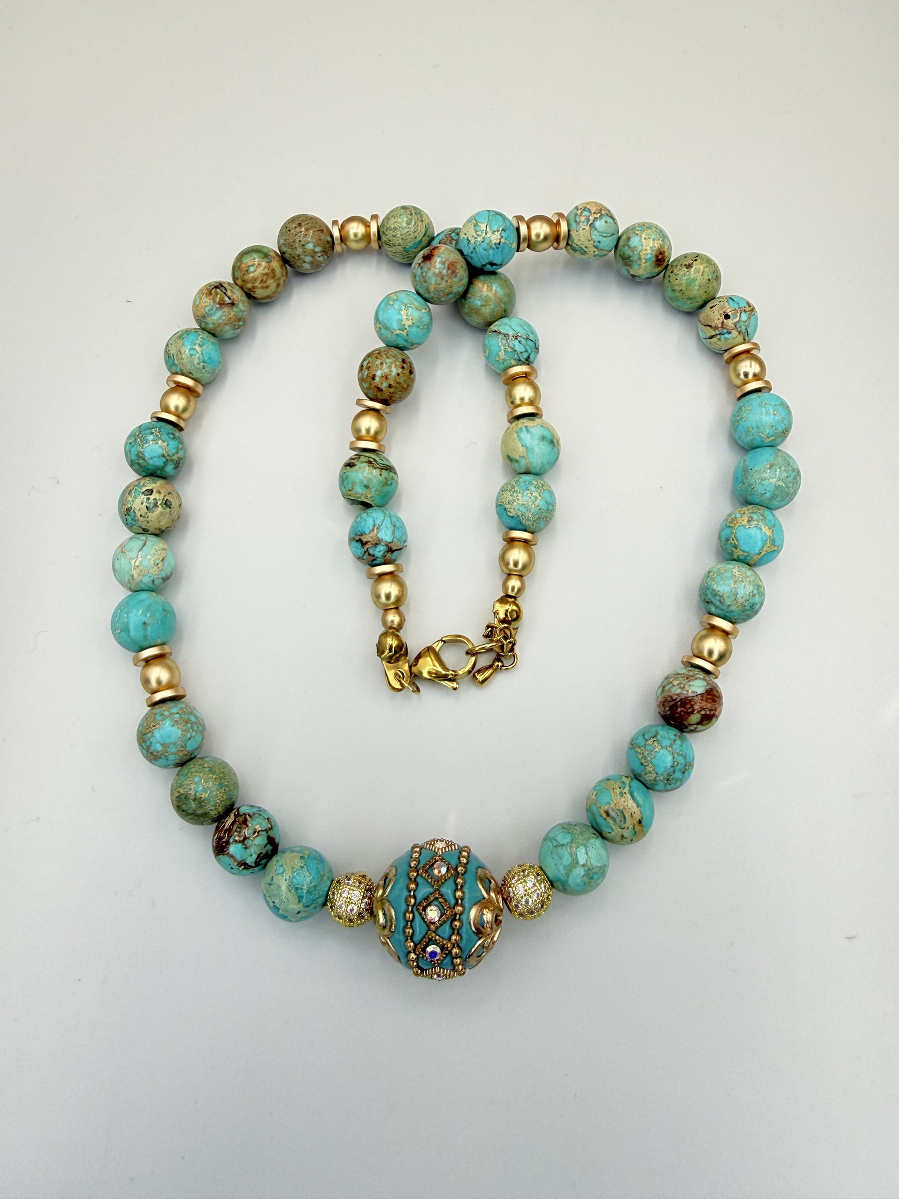 Naszyjnik z jaspisu i hematytu z przekładkami ze stali nierdzewnej to elegancka biżuteria wykonana z naturalnych kamieni, łącząca spokojną estetykę z wyrazistą symboliką. Jaspis kojarzony jest z równowagą, stabilnością i połączeniem z naturą, wspierając wewnętrzny spokój oraz koncentrację, natomiast hematyt symbolizuje siłę, ochronę i uziemienie. Połączenie tych kamieni tworzy harmonijną kompozycję sprzyjającą stabilności i równowadze emocjonalnej. Przekładki ze stali nierdzewnej nadają całości nowoczesnego charakteru i podkreślają elegancję wykonania. Naszyjnik wyposażony jest w wygodne zapięcie typu karabińczyk oraz przedłużkę, co pozwala na dopasowanie długości, a elementy ze stali nierdzewnej zapewniają trwałość i estetyczne wykończenie. Całość tworzy stylowy dodatek podkreślający stabilność i indywidualny styl.