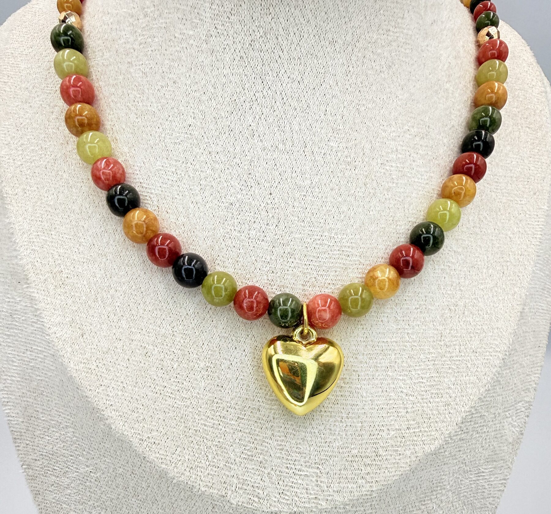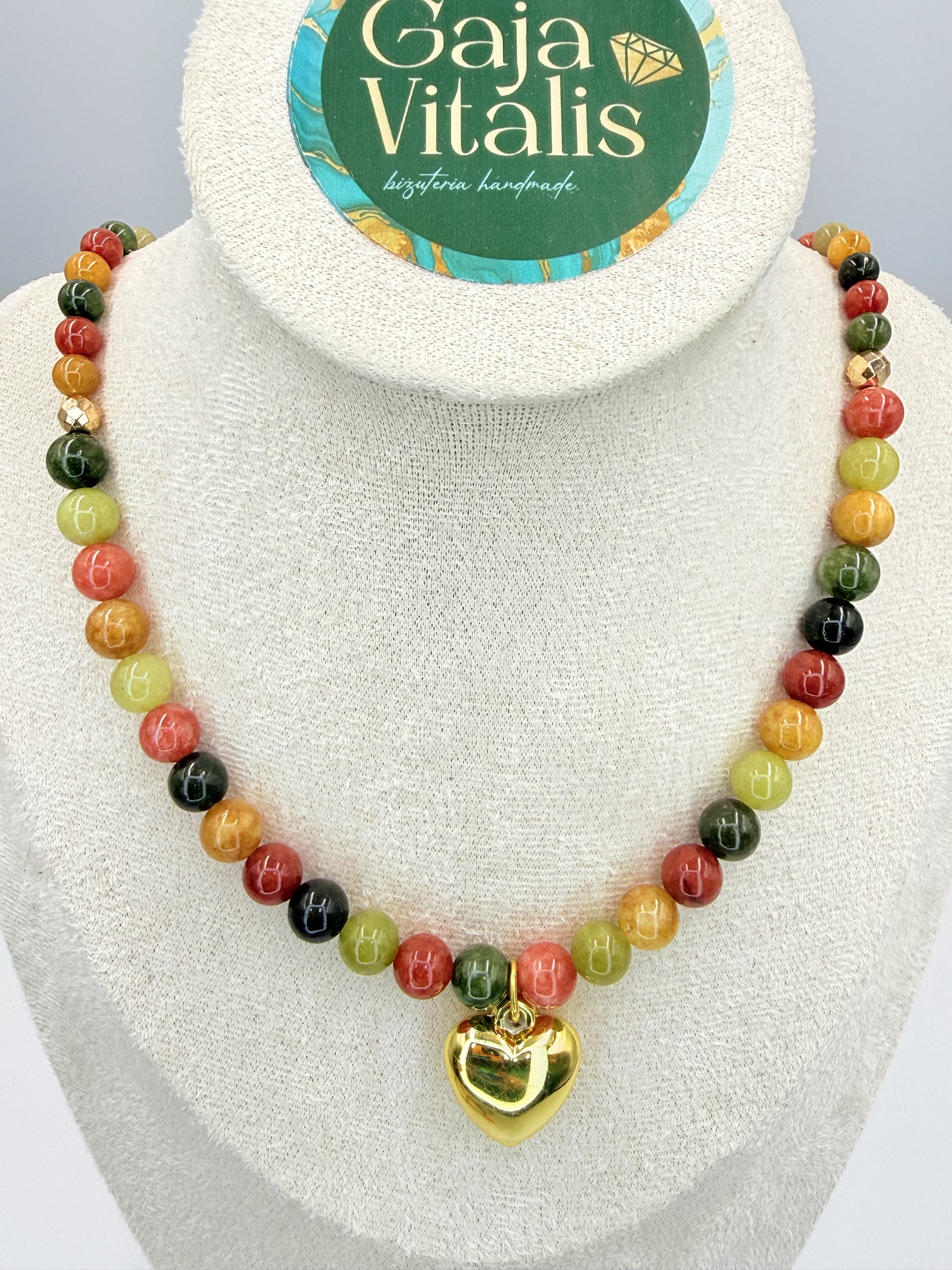 Naszyjnik z agatu i hematytu z zawieszką w kształcie serca to elegancka biżuteria wykonana z naturalnych kamieni, łącząca klasyczną formę z subtelną symboliką. Agat kojarzony jest z równowagą, ochroną i stabilizacją emocjonalną, wspierając spokój oraz wewnętrzną harmonię, natomiast hematyt symbolizuje siłę, uziemienie i poczucie bezpieczeństwa. Zawieszka w formie serca ze stali nierdzewnej nadaje całości osobistego i emocjonalnego charakteru, podkreślając znaczenie bliskości i relacji. Naszyjnik wyposażony jest w wygodne zapięcie typu karabińczyk oraz przedłużkę, co pozwala na dopasowanie długości, a elementy ze stali nierdzewnej zapewniają trwałość i estetyczne wykończenie. Całość tworzy stylowy dodatek podkreślający harmonię i indywidualny styl.
