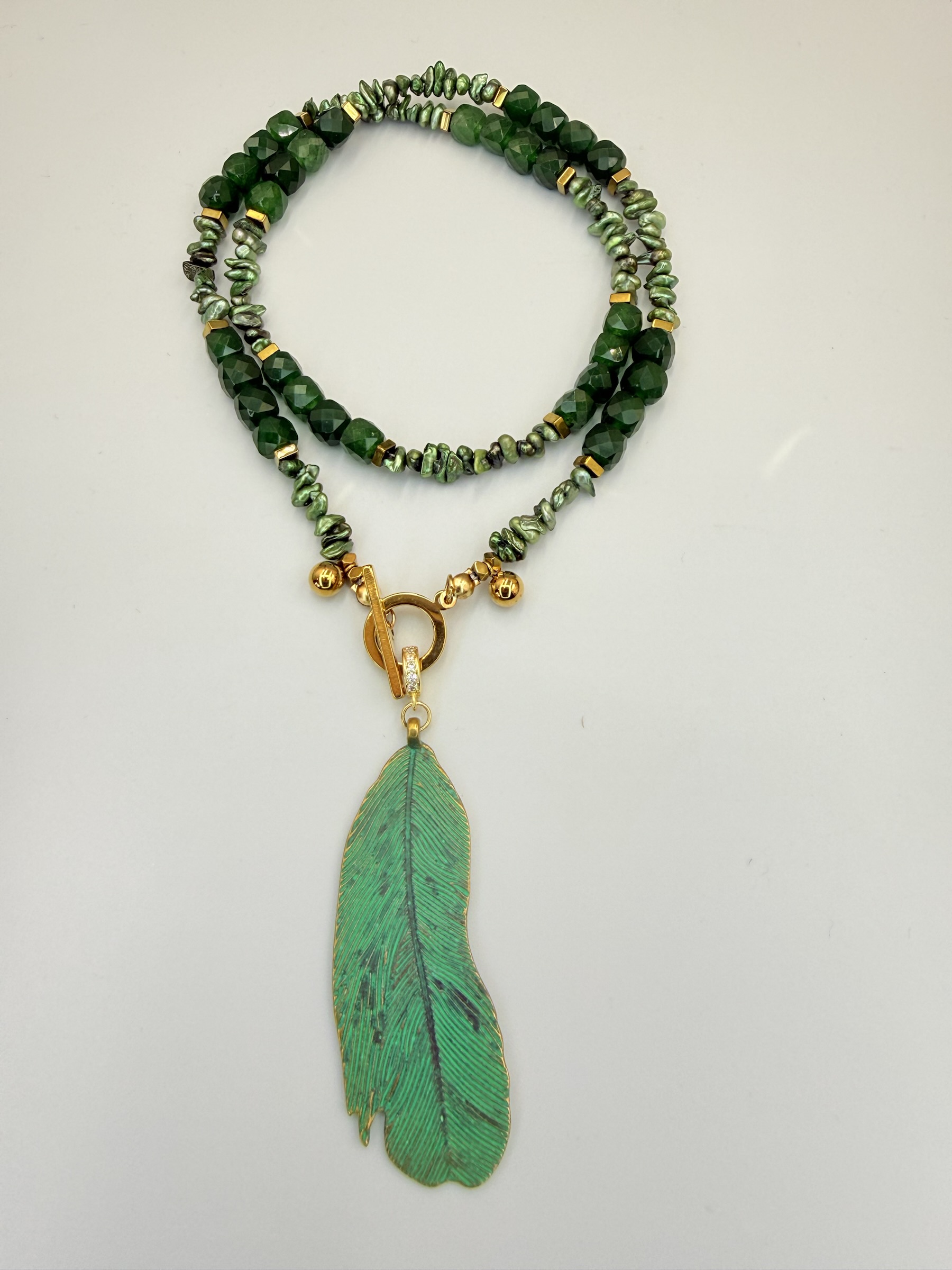 Naszyjnik z pereł słodkowodnych i Jadeitu